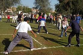 penanda garisan, akan digunakan tepung atau tali jika dimainkan di atas padang.